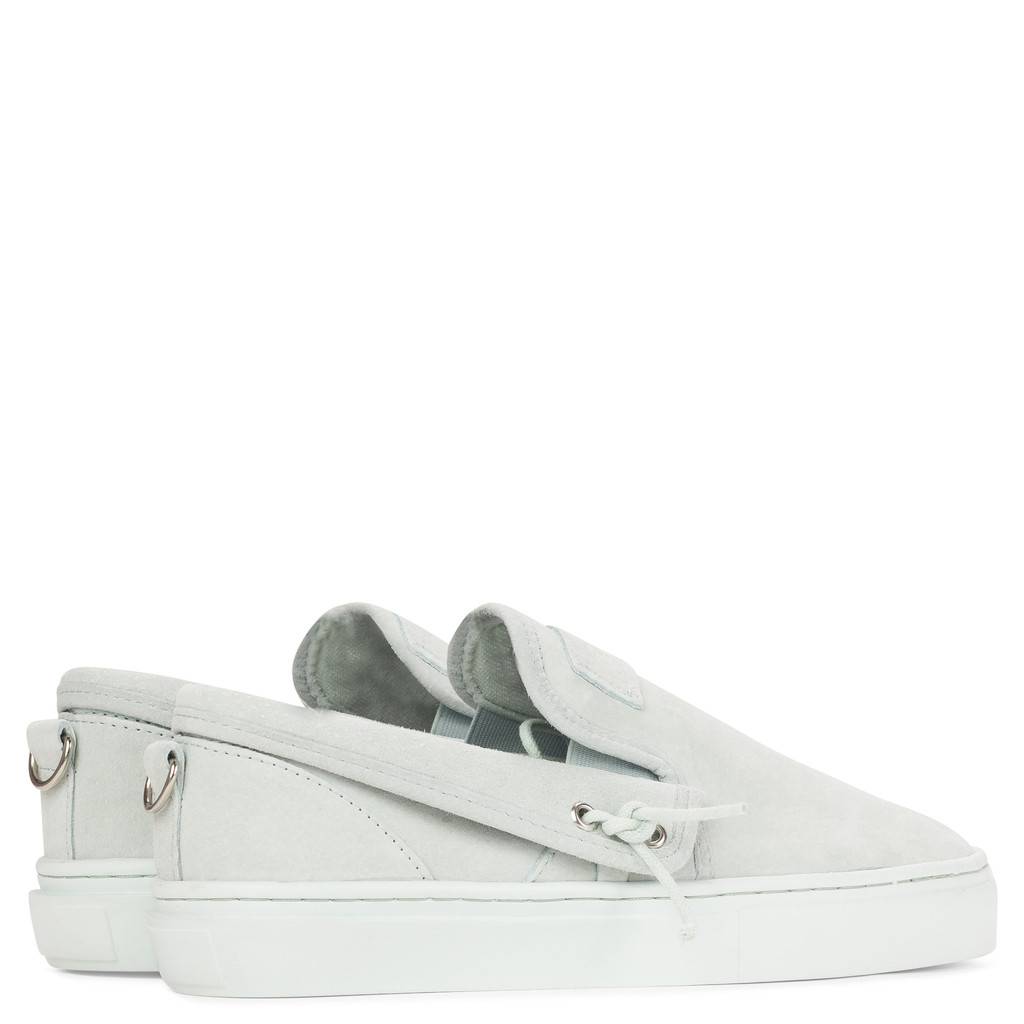BILLOWING SAIL PIG SUEDE UPPER SILVER METAL D-RING WITH REMOVABLE LACE TIES /